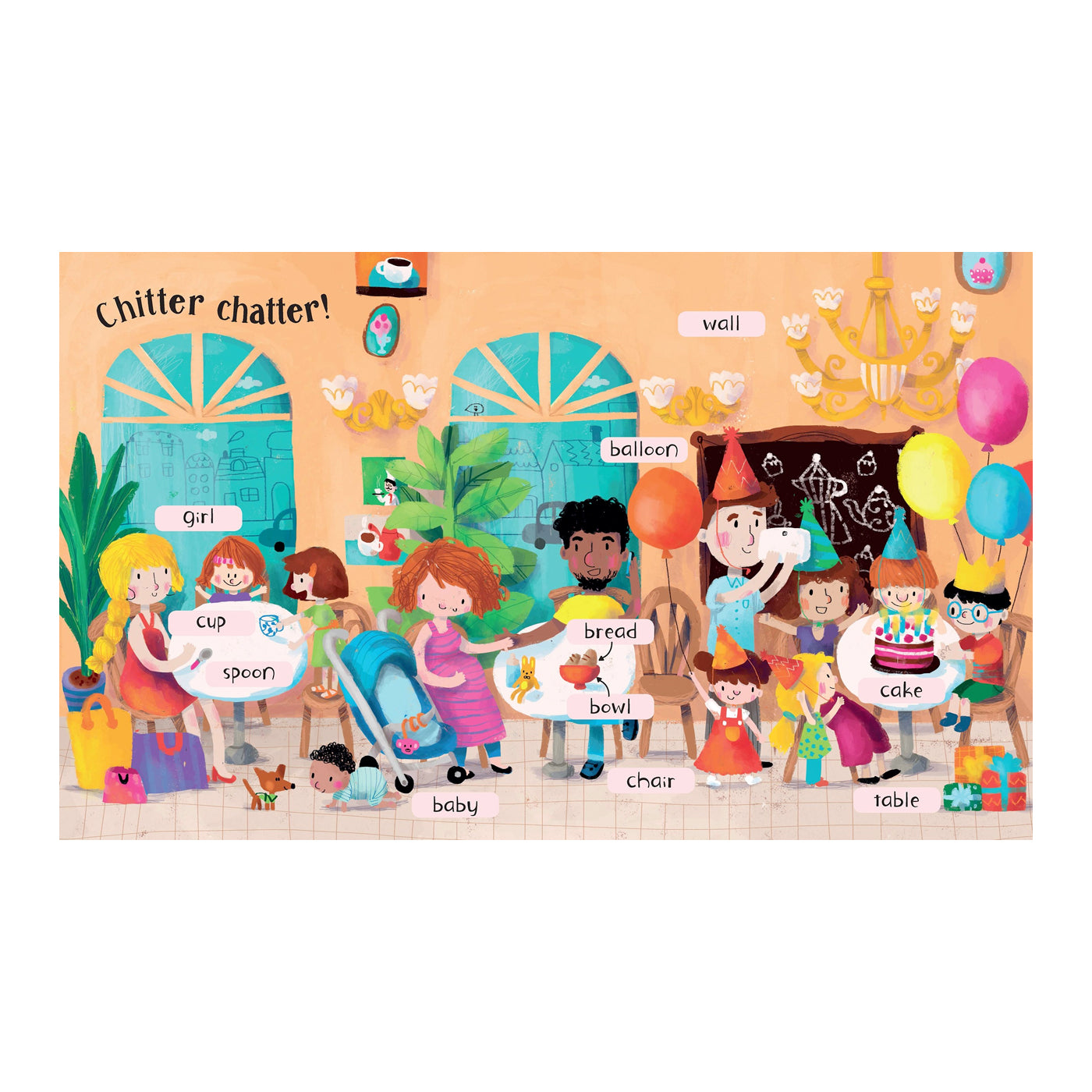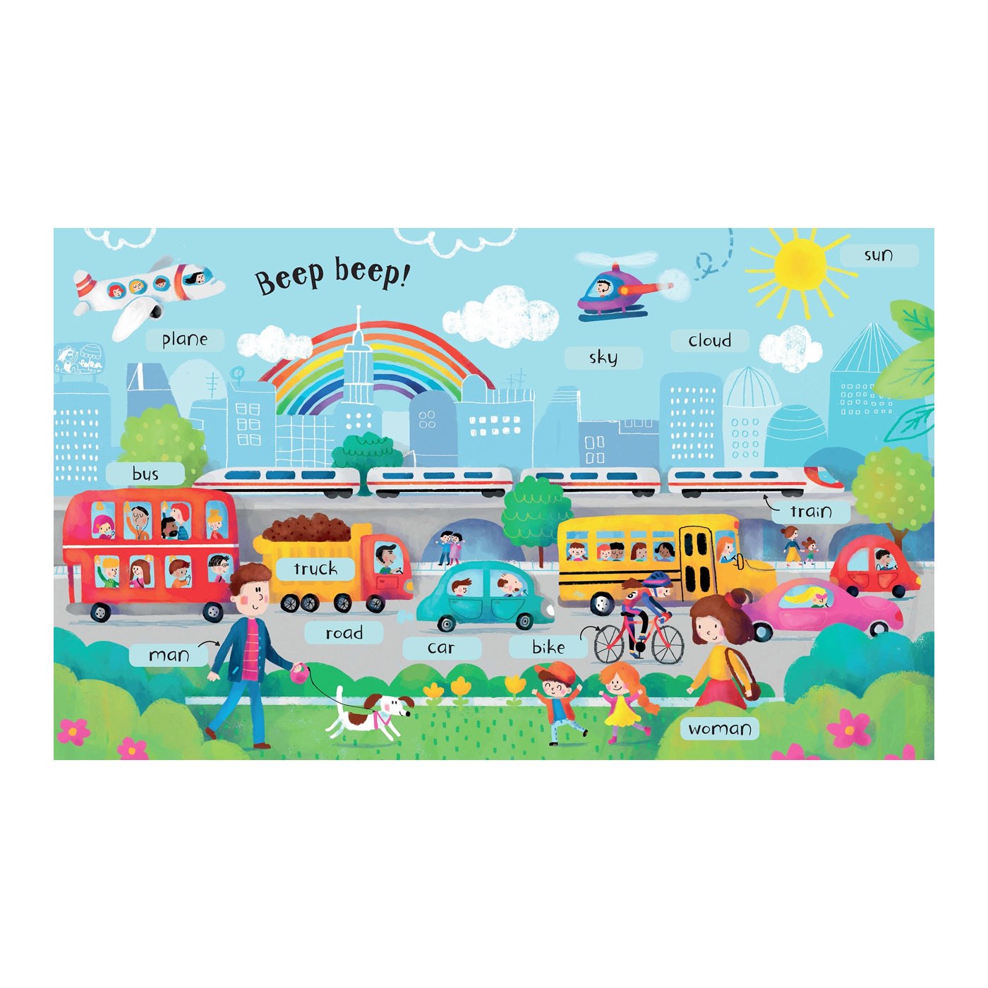 Çocuklar vızıldayan arılar, yağmur damlaları, konuşkan çocuklar ve gürültülü küçük kuzularla dolu bu harika resimli kitapla 100 İngilizce kelimeyi eğlenceli bir şekilde öğrenebilirler.