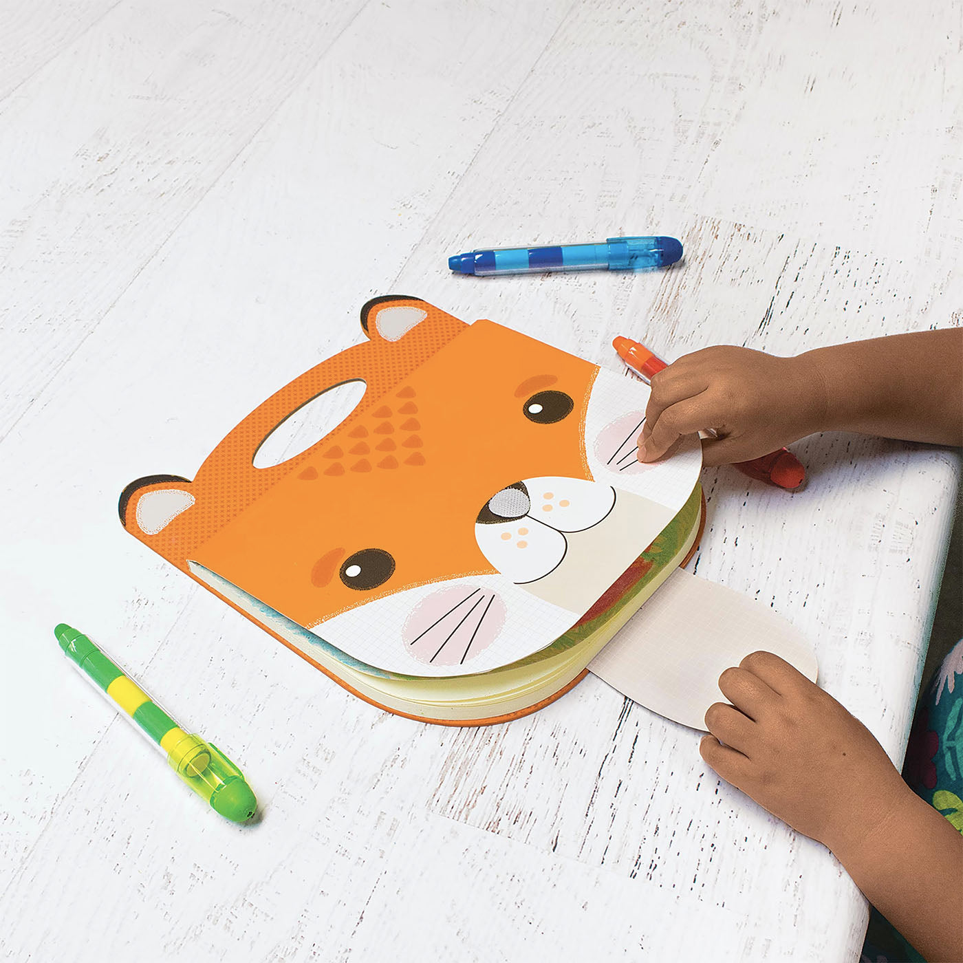 Bu dost canlısı küçük eskiz defterini sanat çalışmalarınız için dilediğiniz her yere götürün. Tilki figürlü eskiz defteri, 60 sayfadan fazla, yüksek kaliteli 100 g/m2 kağıt içerir. Kağıt yapısı tükenmez, keçeli, pastel gibi farklı türlerde boyamalar yapmaya; koparılabilir sayfaları çocukların eserlerini sergilemelerine imkan sağlar. Tutma kulpu ve tokasıyla her yere rahatlıkla götürebileceğiniz eskiz defteri ile sanat ve macera artık el ele!