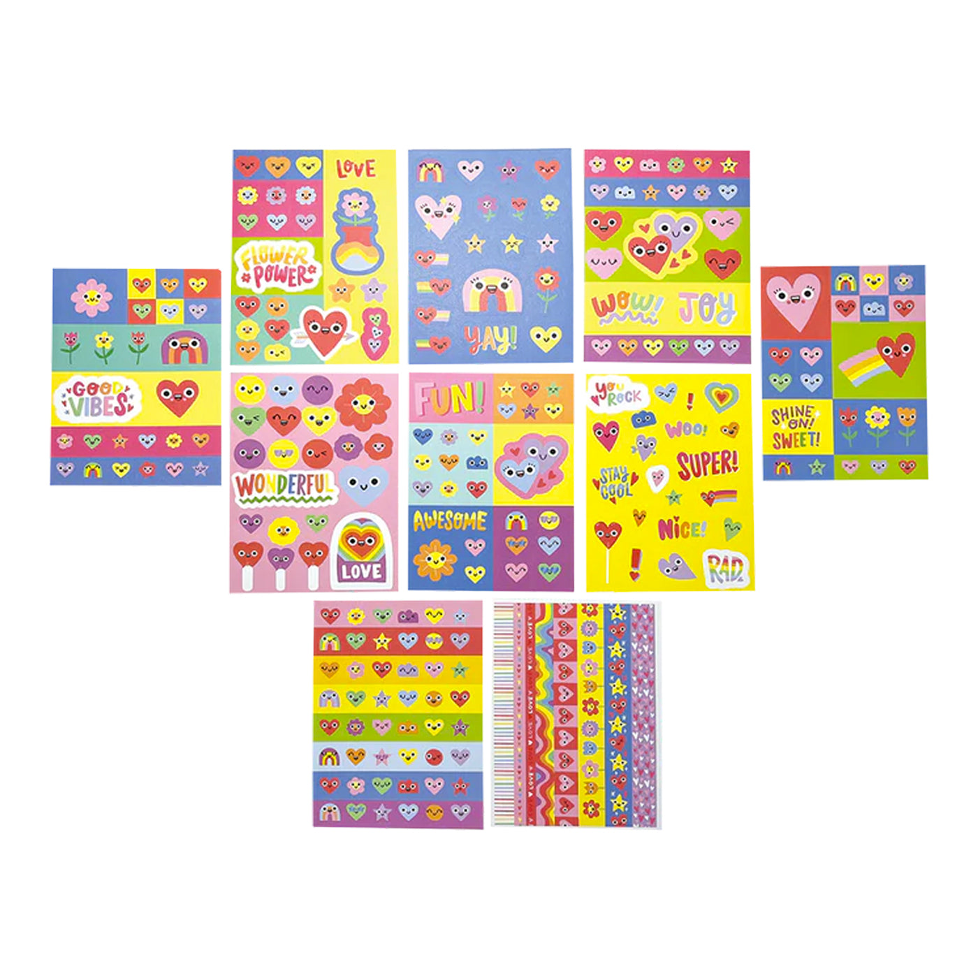 Mutlu kalpler çıkartma sayfalarıyla kocaman gülümsemelere hazır olun! 10 sayfalık çıkartmalar arasında neşeli kalpler, gülen yüzler, davetkar çiçekler ve çok daha fazlası sizi bekliyor.