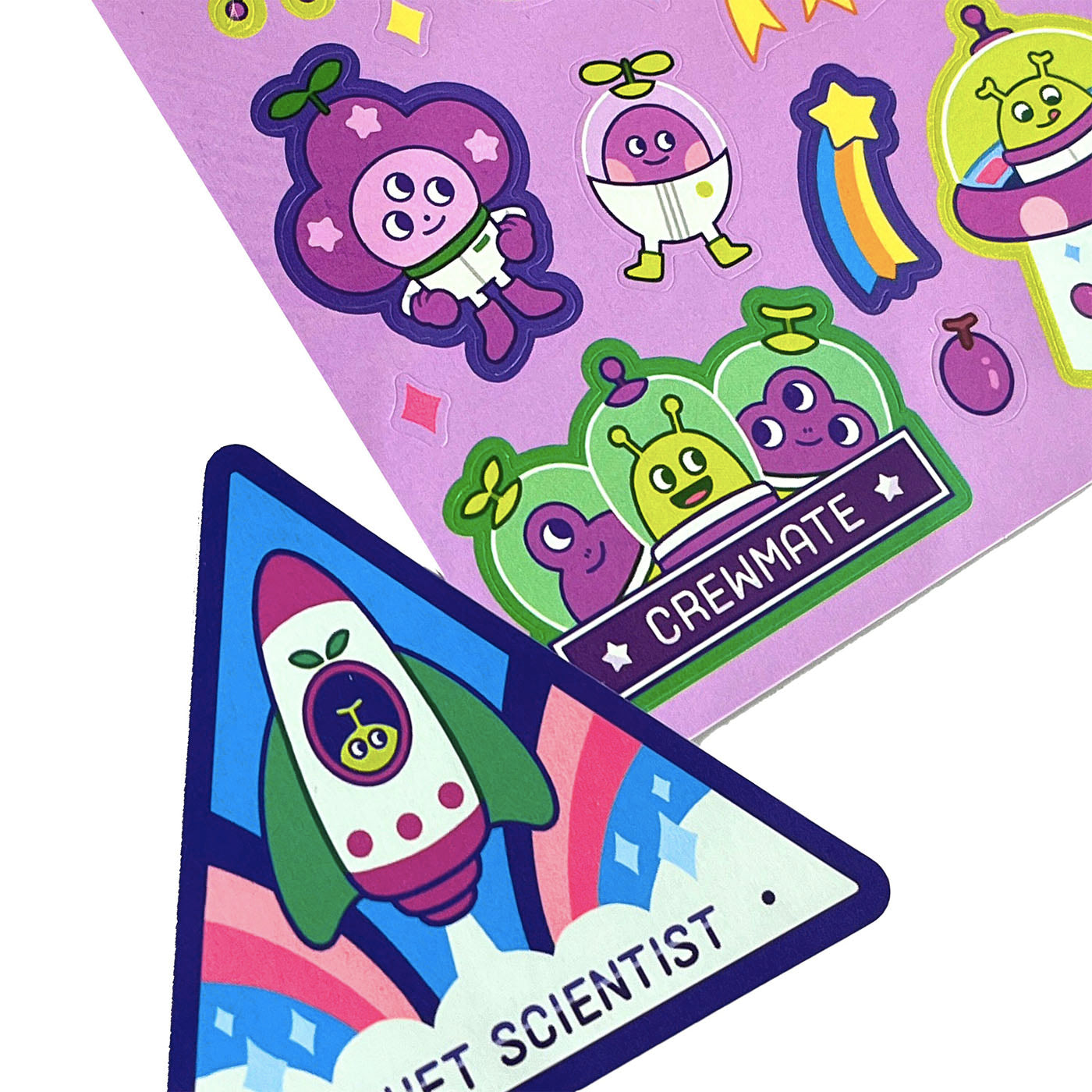 Üzüm Galaksisi'ne hoş geldiniz! İki yaprak üzerine yerleştirilmiş sekiz jumbo kalıp kesim çıkartmadan oluşan bu set, üzüm şeklindeki "kokulu" uzaylı çıkartmalarından oluşuyor. Çıkartmaların üzerinde parmak uçlarınızı gezdirdiğinizde kokular açığa çıkıyor.