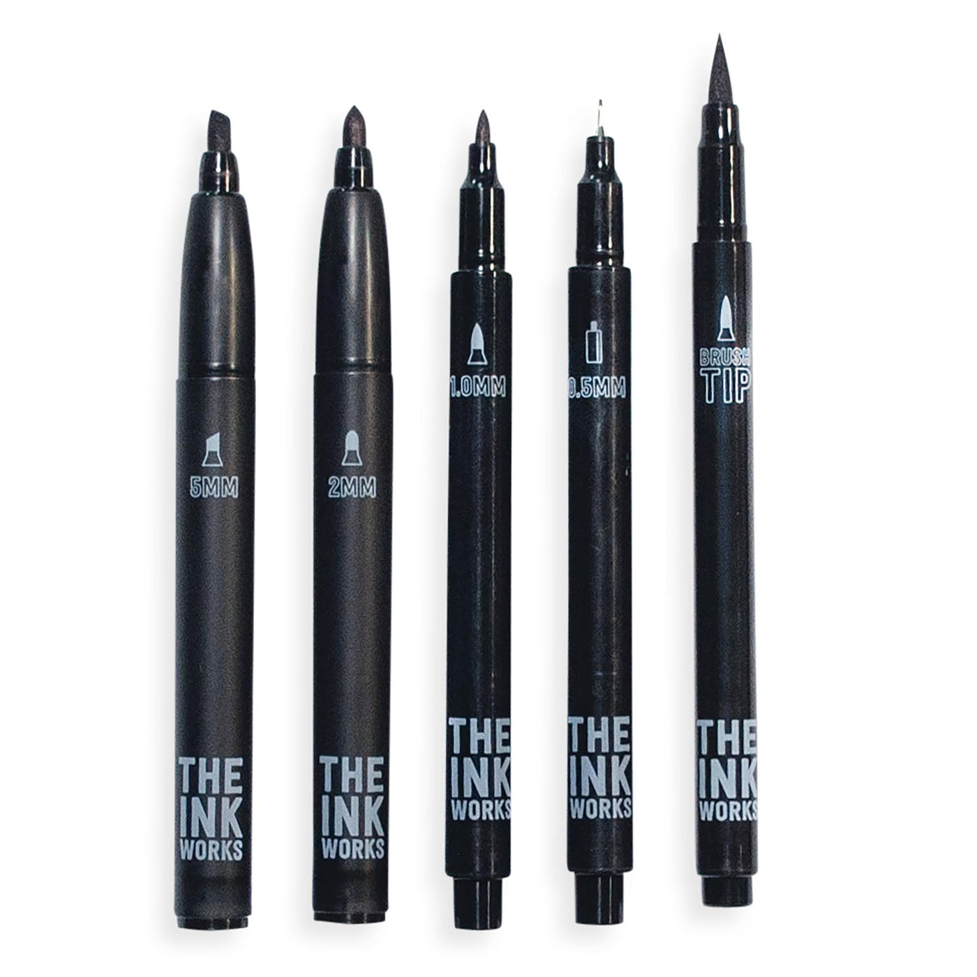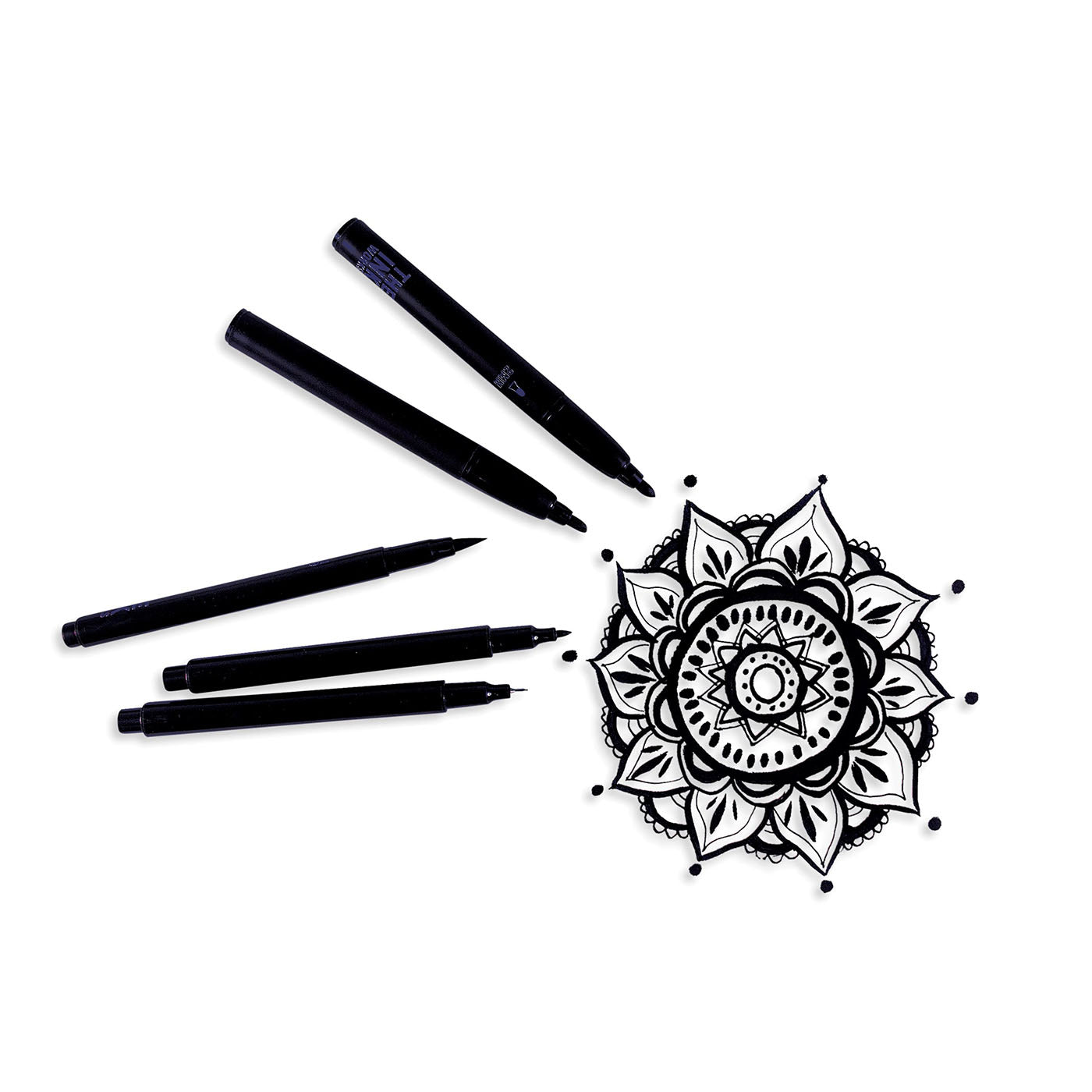 Her biri farklı tipte uçlara sahip, siyah mürekkepli 5 keçeli kalemden oluşan bu set, kaligrafi çalışmaları, ayrıntılı eskizler ve güzel yazılar için ideal. Sette 5 mm'lik keski ucu, 2 mm'lik yuvarlak uç, ince fırça ucu, 1,0 mm'lik uç ve ultra ince 0,5 mm'lik ultra ince uç bulunuyor. Ayrıca her bir kalemin içindeki mürekkep asitsizdir.