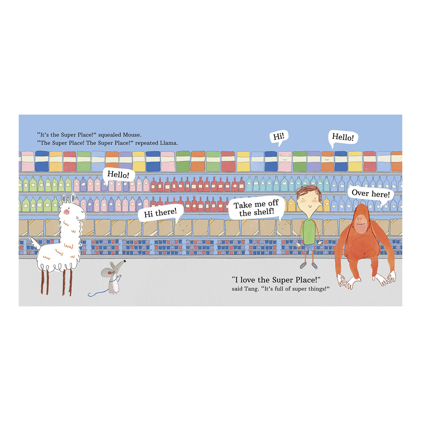 Pablo ve arkadaşları süpermarkete ya da onların deyimiyle süper yere gidiyorlar! Tang süper yeri seviyor ancak Fare burayı fazla parlak ve fazla gürültülü buluyor. Pablo ve arkadaşları, Super Place'te hoşça vakit geçirmenin farklı yollarını buluyor.