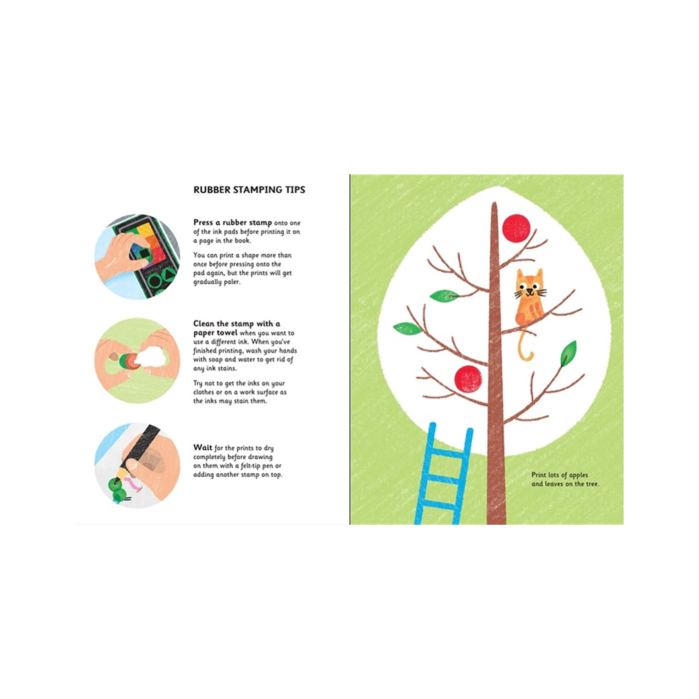Yaramaz kirpiler, sakin tırtıllar, meşgul arılar ve bir çok farklı bitki çeşidine sahip aktivite sayfalarını kauçuk damgalarla eğlenceli hikayelere çevirebilirsiniz! Dilerseniz verilen talimatları takip edebilir, dilerseniz de hayal gücünüze göre sayfaları doldurabilirsiniz.