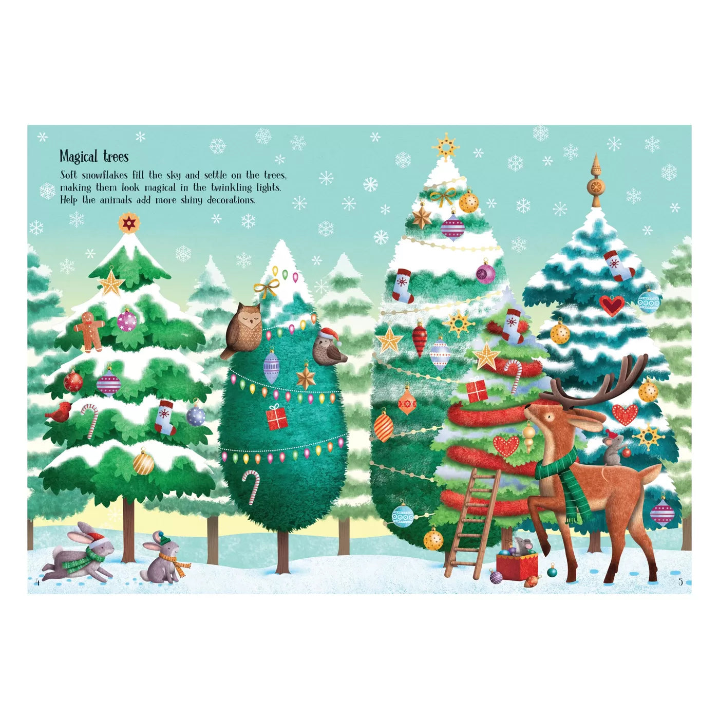 Karlı bir Noel pazarından Noel Baba'nın ışıldayan kızaklarına kadar, ışıltılı çıkartmaları eklerken şenlikli sahnelere sihir serpin. Sincap, Ayı, Penguen ve arkadaşlarının, sahneleri 200'den fazla sevimli hayvan, Noel hediyeleri ve süslemeleri içeren yeniden kullanılabilir çıkartma ve kullanılmadığında çıkartmaları saklamak için katlanabilir arka kapakla dekore etmelerine yardımcı olun.