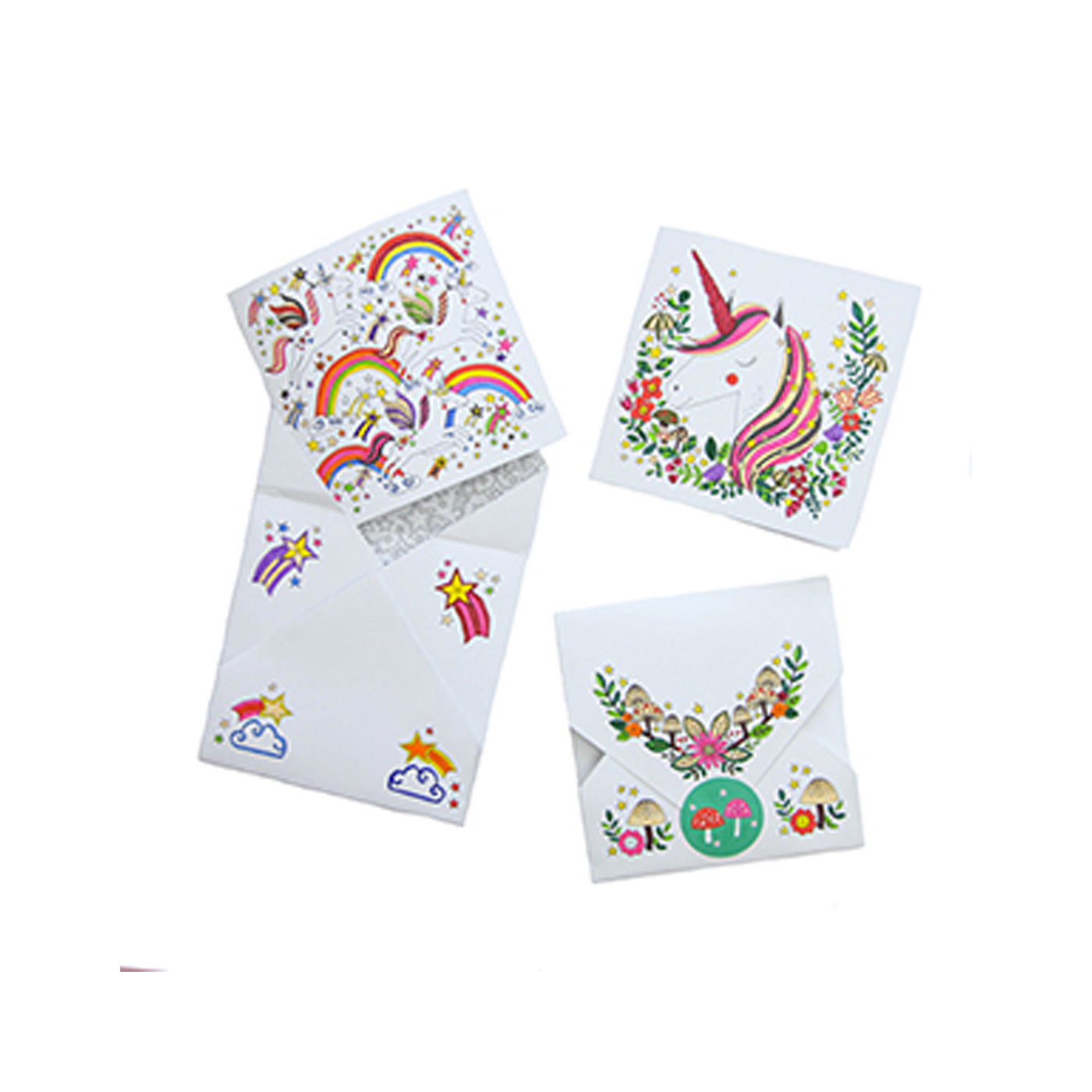 Büyülü tek boynuzlu atları, sevimli yavru kedileri, büyüleyici gökkuşaklarını içeren 24 muhteşem tasarıma sahip olan bu kitapla, sevdiklerinize özel notlar hazırlayın, onları kitabın içinden çıkan zarflara koyun ve yine kitapta yer alan çıkartmalar ile mühürleyin.