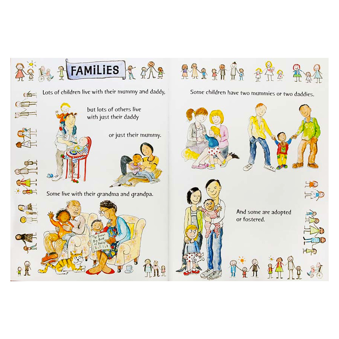 Bir anne ve babadan veya tek ebeveynden iki anne veya iki babaya, karışık ırktan bir aileden farklı anne ve babalara sahip çocuklara, engelli bir üyesi olan ailelere. Bu kitap, günümüzün çok çeşitli aile yaşamına çocukların gözünden taze ve iyimser bir bakış sunuyor.