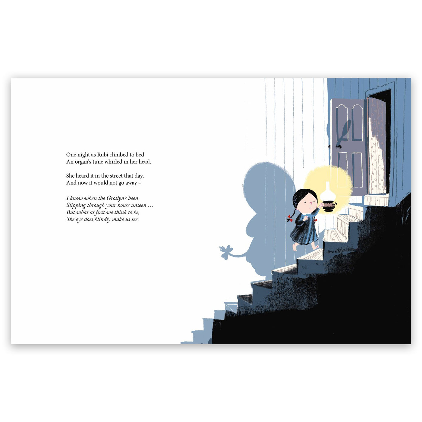 Gizemli Grotlyn nedir? Ne tür bir yaratık olabilir, kasabanın bir ucundan diğer ucuna koşarak yoluna çıkan herkesi korkutabilir mi? Ve neden PC Vickers'ın iç çamaşırını çaldı? Bu ödüllü kitaba, Oliver Jeffers ve Jon Klassen hayranları da bayılacak.
