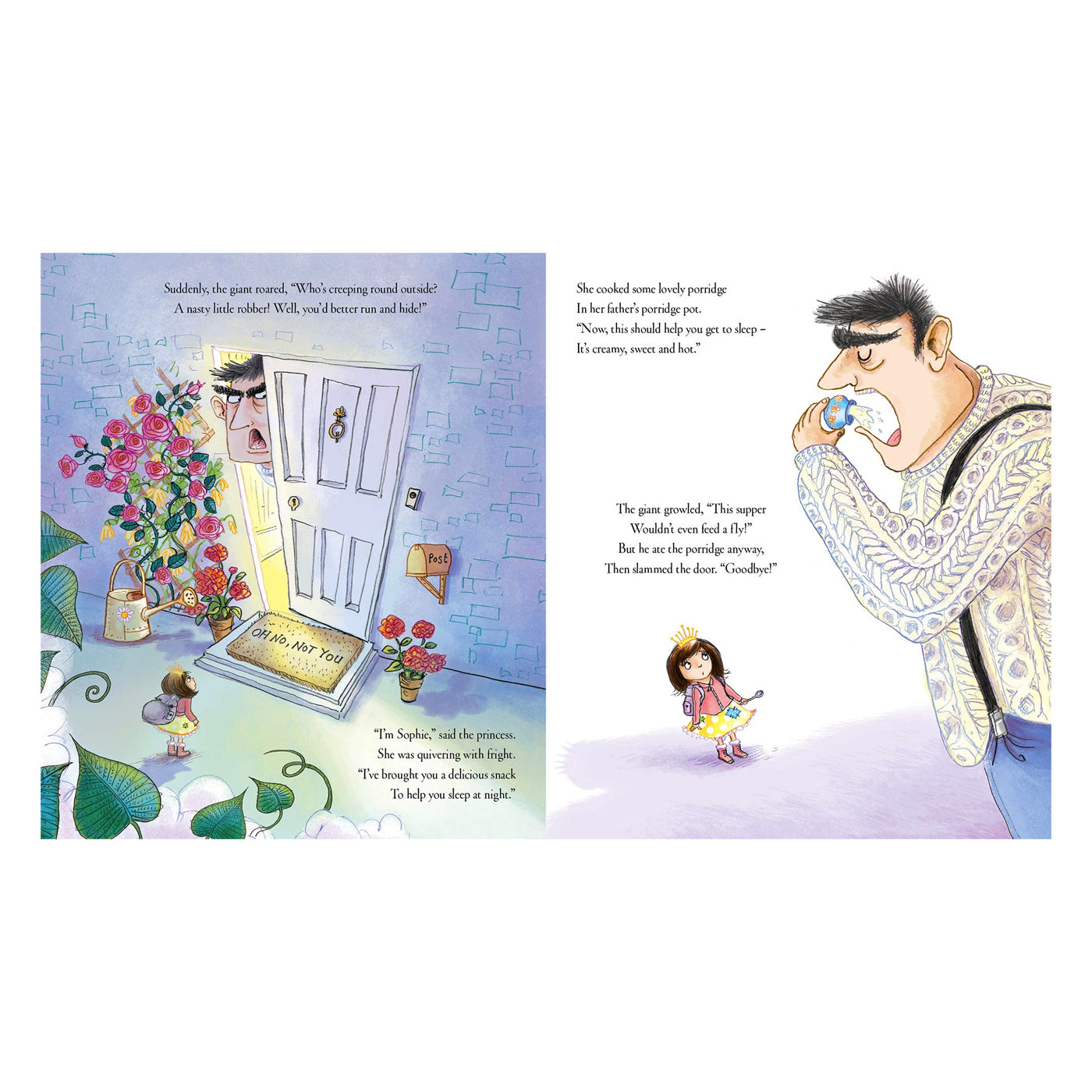 Prenses Sophie çok becerikli bir prensestir. Fasulye sırığının tepesindeki huysuz yaşlı dev, herkesi bütün gece uykusuz bıraktığında, en sevdiği masal kitabının buna bir yanıt bulup bulamayacağını merak eder. Fasulye sırığına cesurca tırmanır ve önce lezzetli bir kase yulaf lapası, sonra kucaklamak için bir oyuncak ayı ve hatta sıcacık bir battaniye alır; ve bunların hepsi devin uyumasına yardımcı olur. Ama sonunda Sophie mükemmel çözüm bulana kadar hiçbir şey şey işe yaramaz: Devin bir hikayeye ihtiyacı vardır!