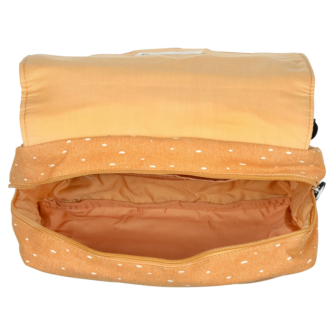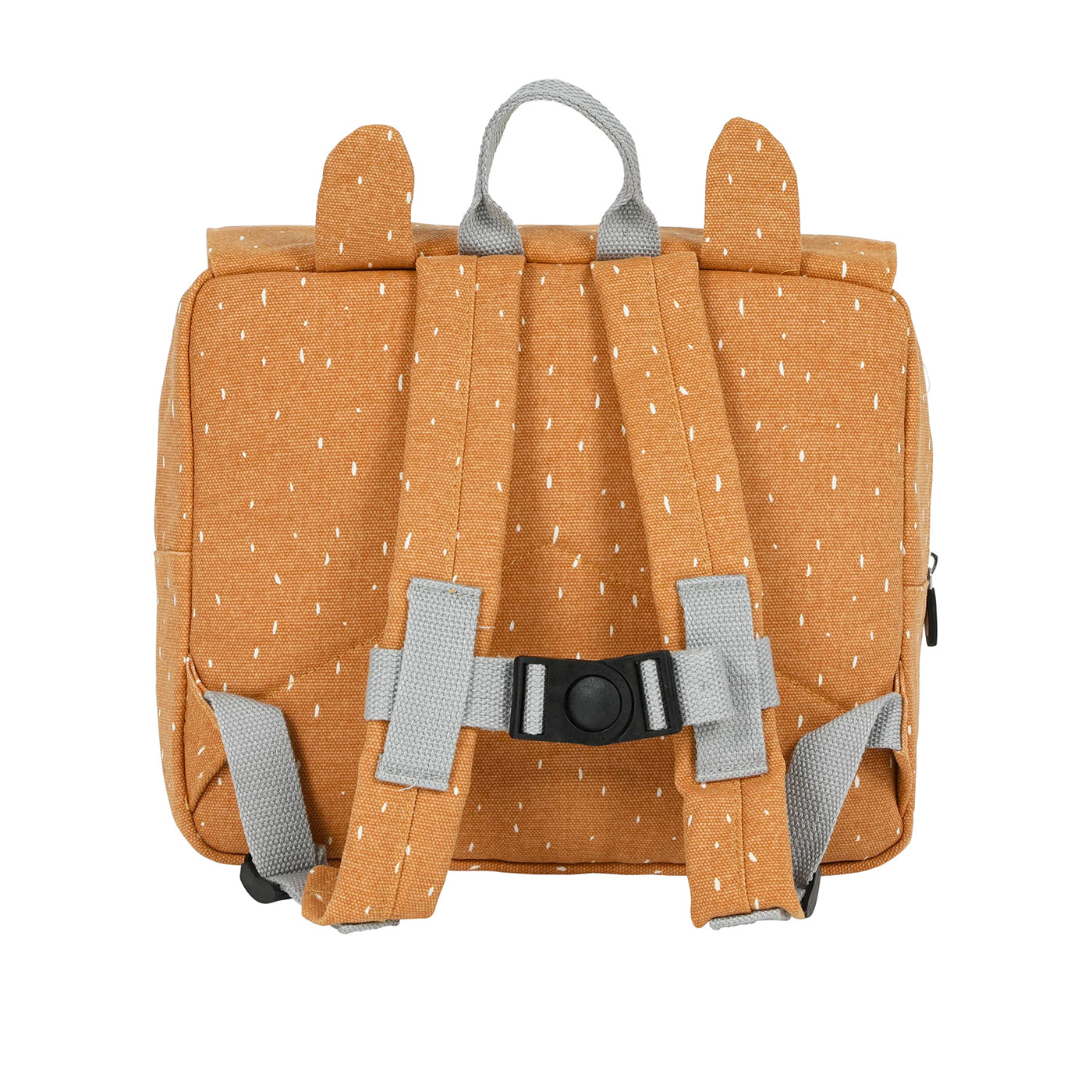 Bu sevimli sırt çantası ile çocuğunuz herhangi bir maceraya veya okula ilk seyahatine tamamen hazır! Sırt çantası, ayarlanabilir ve dolgulu omuz askılarına ve gittiğiniz her yerde kolayca tutup asmak için üstte kısa bir tutamağa sahiptir. Göğüs kemeri, omuz askılarının aşağı düşmesini önler. Sırt çantasının büyük bir bölmesi ve küçük bir ön cebi vardır, burada küçük bir aperatifi güzelce saklayabilirsiniz. Ana ve ön cepte, çocukların sırt çantasını kolayca açıp kapatmalarını sağlayan bir fermuar bulunur. Seyahat arkadaşınızı kaybetmemeniz için çantanın iç kısmında isim etiketi bulunmaktadır. Ayrıca sırt çantası su tutmaz ve çamaşır makinesinde hafif durulama ile yıkanabilir. Ancak, çantayı ne kadar çok yıkarsanız, o kadar az su itici olacağını unutmayın.