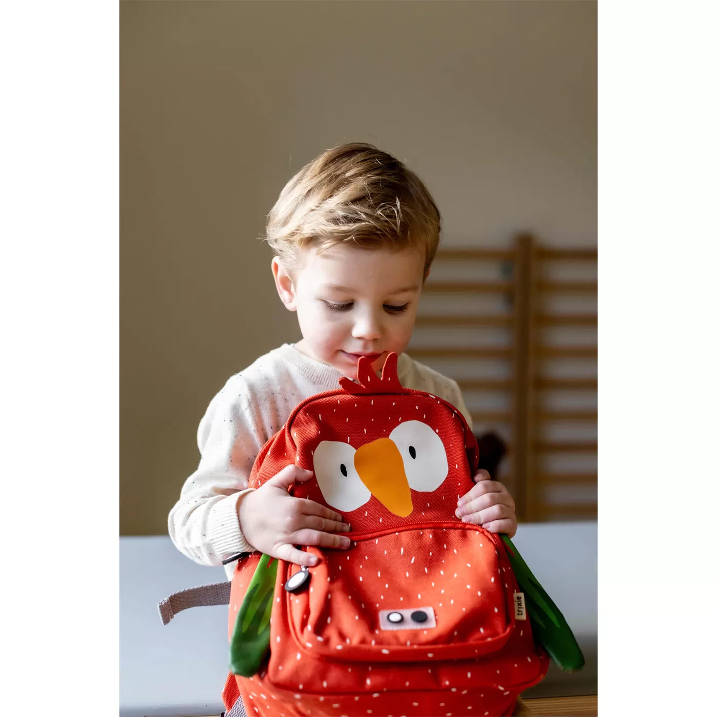 Bu sevimli sırt çantası ile çocuğunuz herhangi bir maceraya veya okula ilk seyahatine tamamen hazır! Sırt çantası, ayarlanabilir ve dolgulu omuz askılarına ve gittiğiniz her yerde kolayca tutup asmak için üstte kısa bir tutamağa sahiptir. Göğüs kemeri, omuz askılarının aşağı düşmesini önler. Sırt çantasının büyük bir bölmesi ve küçük bir ön cebi vardır, burada küçük bir aperatifi güzelce saklayabilirsiniz. Ana ve ön cepte, çocukların sırt çantasını kolayca açıp kapatmalarını sağlayan bir fermuar bulunur. Seyahat arkadaşınızı kaybetmemeniz için çantanın iç kısmında isim etiketi bulunmaktadır. Ayrıca sırt çantası su tutmaz ve çamaşır makinesinde hafif durulama ile yıkanabilir. Ancak, çantayı ne kadar çok yıkarsanız, o kadar az su itici olacağını unutmayın.