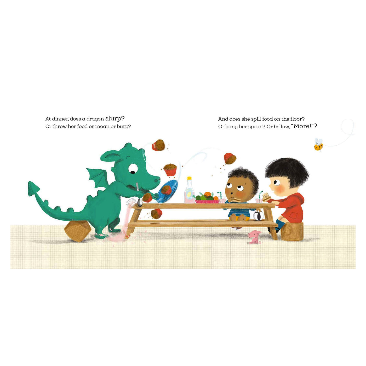 Küçük ejderha arkadaşlarında kalmaya gittiğinde, acaba nasıl davranacak? Oyuncaklarını paylaşması ve banyo zamanı geldiğinde mutlu bir şekilde üst kata çıkması gerektiğini biliyor. Yani aslında tam olarak öyle de sayılmaz. Tüm küçük çocuklar gibi, bu küçük ejderha da görgü kurallarını biraz zor buluyor. Neyse ki ona yardım edecek arkadaşları olduğu için çok şanslı. Sonuçta o bir ejderha!
